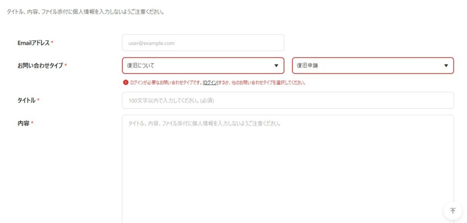 お問い合わせ内容には以上の点をしっかりと書いてください。